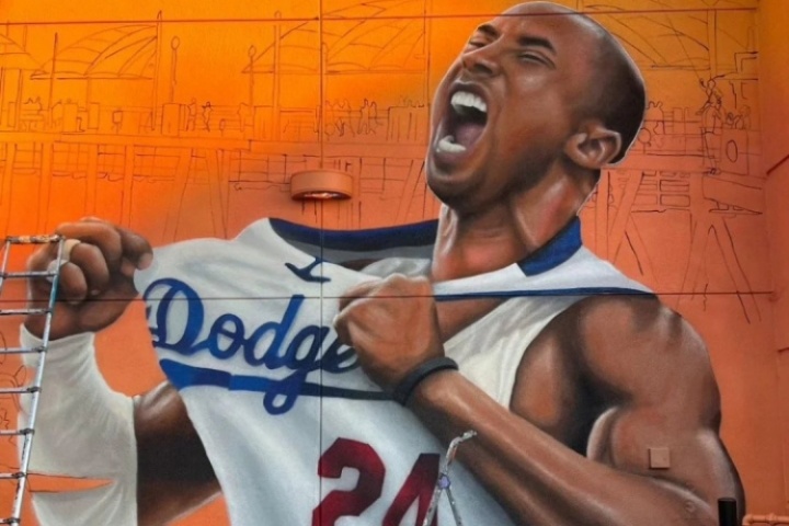 体育资讯08月10日讯 近日,洛杉矶街头正在绘制科比-布莱恩特的新壁画,壁画上,科比穿着道奇队的球衣。