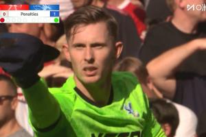 水晶宫门将亨德森头戴鸭舌帽,在点球大战中两度扑出利物浦点球,并在扑出麦卡的点球后脱帽礼庆祝。