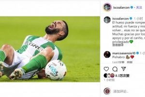 伊斯科社媒写道:“骨头可能断裂,但我的态度、力量和回归的决心……这些永远不会动摇。非常感谢大家的鼓励信息和关爱,这让我感到非常幸运。”