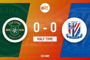上半场比赛结束,浙江主场暂时0-0战平上海申花。