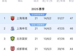 中超第21轮过后,中超榜首易主,上海海港以1分微弱优势领跑积分榜,身后上海申花、北京国安、成都蓉城虎视眈眈,中超冠军之争变化莫测!