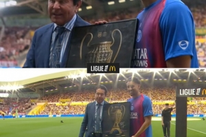 体育资讯8月18日讯 在南特对阵巴黎的首轮法甲联赛开始前,南特主席向巴黎赠送了特别的礼物。