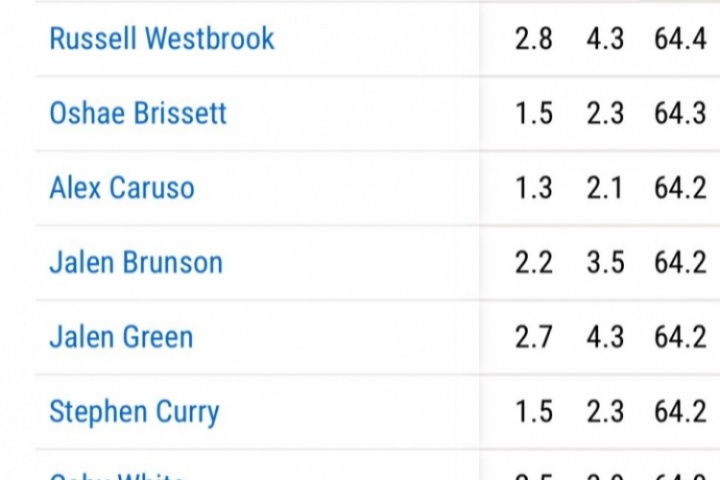 上赛季各后卫的禁区命中率