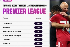 以下为英超历史绝杀次数最多球队top10: