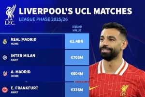 体育资讯8月29日讯 本赛季欧冠联赛阶段对阵抽签结果出炉,德国转会市场盘点了利物浦对手的身价。