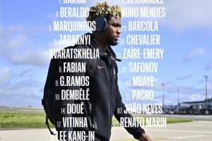 前锋: 7-克瓦拉茨赫利亚、9-贡萨洛-拉莫斯、10-登贝莱、14-杜埃、19-李刚仁、29-巴尔科拉、49-姆巴耶