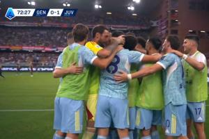 体育资讯09月01日讯 尤文vs热那亚第73分钟,弗拉霍维奇头球破门,全队簇拥着他庆祝!此时比分变为尤文1-0!