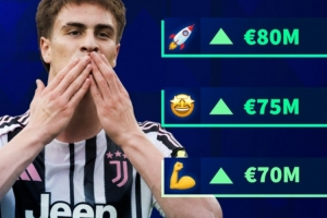 20岁的伊尔迪兹目前身价5000万欧,德转给出的下次更新身价分别有6000万欧、7000万欧、7500万欧以及8000万欧。