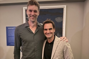 保罗-加索尔晒和网球名将费德勒合影:每次和你聊天都很开心