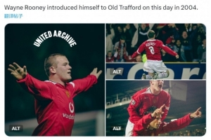 体育资讯9月28日讯 曼联官方更新社媒动态,回顾2004年的今天鲁尼上演曼联首秀。