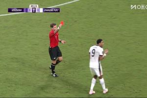 体育资讯09月30日讯 亚冠精英联赛东亚区第2轮,广岛三箭vs上海海港第90分钟,海港前锋古斯塔沃拼抢中犯规,主裁判果断直红将其罚下,VAR核实后维持了原判。