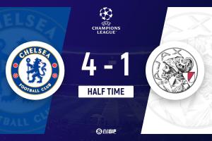 半场-切尔西暂4-1十人阿贾克斯 吉乌破门凯塞多建功恩佐点射