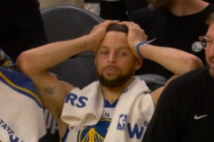 GIF-波斯特命中三分,库里抱头